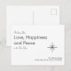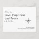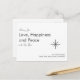 Tarjeta de vacaciones de Año Nuevo 2026 retro, con un diseño de tipografía gris sobre fondo blanco. Con letras personalizables, puedes agregar el nombre de tu familia. Una imagen de copo de nieve gris acentúa la parte delantera de la tarjeta y con un fondo gris en la parte posterior. Una forma sencilla de enviar tus deseos de amor y paz en el año nuevo.