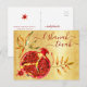 Postal Festiva Acuarela de Rosh Hashaná Granada Roja sobre Dorado