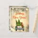 Postal Festiva Árbol de Camión Rojo Clásico Felices Saludos de Añ