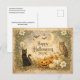 Postal Festiva Art Nouveau Black Cat Owl Halloween