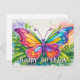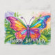 Esta postal creativa y única presenta un ilustracion de una mariposa flotante colorida. Este saludo de cumpleaños sería verdaderamente maravilloso para amigos, familia y compañeros de trabajo.