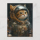 Postal astronauta del gato Steampunk. Imagen caprichosa de un lindo gatito tabby vestido con un astronauta al vapor.