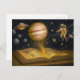 Un astronauta se eleva de un libro abierto hacia el espacio profundo, rodeado de planetas, estrellas y galaxias brillantes. Ilustración de fantasía y ciencia ficción con atmósfera futurista y estilo imaginativo.
