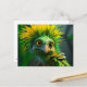 Esta postal tiene un pájaro verde encima.