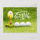 Postal Festiva Balón de golf Feliz Pascua con huevo de Pascua ver