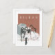 Souvenir de Bilbao. La postal recoge la escultura de la arañan Maman, de Louise Bourgeois, al lado del Museo Guggenheim. La escena está rodeada por la niebla de la escultura de la artista Fujiko Nakaya.