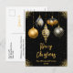 Send warm holiday wishes with this sophisticated Christmas postcard featuring five elegant ornaments in black and gold tones. Each ornament showcases a unique design - floral, snowflake, dripping faux glitter, diamond pattern, and stars - against a rich black background with golden sparkles. The luxurious palette and refined layout make this card ideal for stylish families, formal greetings, or corporate holiday messages. Perfect for those who love modern elegance with a festive twist.