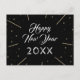 Black Happy New Year 2023 Script Star patrón tarjeta postal de vacaciones. Festiva tarjeta de Año Nuevo con fondo negro y estrellas doradas. Personalice la parte delantera y trasera de la tarjeta postal con su texto.