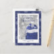 Envíe elegantes saludos esta temporada navideña con estas elegantes postales de vacaciones felices azules con regalos de Navidad y copos de nieve.