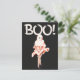 Esta llamativa postal de feriado de Halloween presenta un divertido ilustracion de estilo vintage de un fantasma con un giro —una figura elegante con un disfraz fantasma clásico, que sorprende a una pose. El audaz texto de "¡Boo!" en la parte superior se suma a la diversión, lo que hace de esta postal de Navidad perfecta para enviar alegres saludos de Halloween. El color negro y los acentos naranjas le dan un toque retro al diseño, lo que lo convierte en una elección ideal para quien aprecie la mezcla de nostalgia y humor en su decoración de Halloween.
