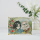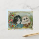 Postal Festiva Borde floral de gatos blancos y negros