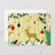 Postal Festiva Bosque Dorado Invierno Reno Pájaros