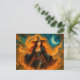 Postal Festiva Bruja con llamas y luna creciente