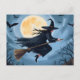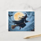 Bruja en un bastón | Feliz postal de feriado pintado de Halloween