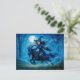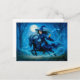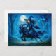 Postal Festiva Bruja montando una cabra a través del bosque ilumi