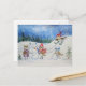 Postal Festiva búhos navidades jugando en la nieve