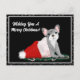 Postal Festiva Bulldog francés cachorro en Gorra de Santa