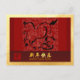 Pintura lavadora original n° 5 de un caballo por RB. Diseño en postales vacacionales con varias caligrafías chinas del ideograma Fu (que significa Suerte) en un fondo rojo + caligrafía antigua china para Caballo + Deseos en chino e inglés enmarcado con papel texturizado dorado (imagen impresa) + textos para personalizar en la parte posterior de la postal.