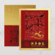 Pintura lavadora original n° 5 de un caballo por RB. Diseño en postales verticales de vacaciones con varios caligrafías chinas del ideograma Fu (que significa Suerte) en un fondo rojo + gran dorado 2026 (escritura original) + caligrafía antigua china para caballo + Deseos en chino e inglés enmarcado con papel texturizado dorado (imagen impresa) + textos para personalizar en la parte posterior de la postal.