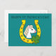 Postal Festiva Caballo con zapato de caballo dorado, Shamrock | P