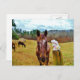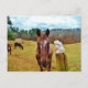Postal Festiva Caballo del conejito y de Brown de pascua