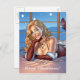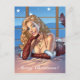 Postal Festiva Cabello rubio, Ilustracion de belleza con ojos azu