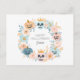 Esta tarjeta postal personalizada de Halloween con una calavera y flores en estilo chic ofrece una forma elegante de enviar deseos espeluznantes durante esta temporada festiva. La parte frontal de la tarjeta presenta "Feliz Halloween [tu nombre]" en un diseño moderno de corona en colores pastel con calaveras, calabazas y flores delicadas en tonos de rosa, azul, blanco y naranja. La parte trasera proporciona espacio para un mensaje personalizable, lo que te permite agregar un deseo especial de Halloween y el nombre de tu familia. Perfecta para agregar un toque sofisticado a tus saludos de Halloween, esta tarjeta es linda y elegante, ideal para compartir alegría festiva con amigos y familiares.🦋 Puedes personalizarla aún más cambiando el texto, la fuente y el color de la fuente para que coincida con tu estilo personal; simplemente selecciona "Personalizar esta plantilla" > "Editar con la herramienta de diseño".