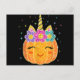 Postal Festiva Calabaza de unicornio lindo Halloween Día de Acció