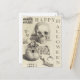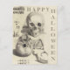 ¡Una postal especial Feliz Halloween! Este diseño vintage presenta cráneos en un fondo gris oscuro. Perfecto para desear a amigos y familiares una feliz halloween.