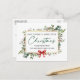 Elegant Watercolor Winter Greenery with Modern Calligraphy Ink Pen Script - Have Yourself A Merry Little Christmas Postcard - includes eucalyptus leaves and red holly berries. Red Bow Ribbon. Green Script.