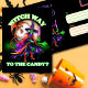 Postal Festiva Camino de bruja a la Halloween de los Candy
