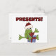 Camisetas navideñas de Santa Frog, sudaderas, bolsas de té, tarjetas, pegatinas, tazas, imanes, cadenas de claves, y otras prendas de vestir y regalos que presentan una rana con un sombrero de Santa, regalos y texto que dice "¡Presentes!".
