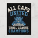 Celebra el humor de internet con este divertido diseño de "All Caps United Troll League Champions". Con un troll malicioso en el teclado, es perfecto para jugadores, amantes de memes y todo aquel que disfrute de bromas en línea juguetonas.