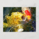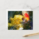 Postal Festiva Carpa amarilla koi y pez dorado en la superficie d