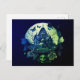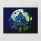 Postal Festiva Casa gótica verde y morada embrujada