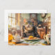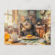 Postal Festiva Cat at breakfast table with croissants and juice