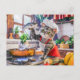 Postal Festiva Cat in chef hat cooking with vegetables and fish