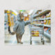 Postal Festiva Cat with shopping basket in supermarket aisle