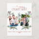 Charm Winter Bouquets Family Photos diseño de tarjetas. Se trata de arreglos de invierno acuarelas (pino, conos, berry, hojas de eucalipto), caligrafía moderna y elegante de color rojo falso y oro rosa "alegre" caligrafía, tipografía "Navidad" y tus fotos dentro de marcos blancos, todo sobre fondo blanco. Utilice la herramienta Personalize para agregar su foto e información. Más ideas en Sparkling Holidays Collection.