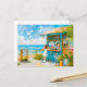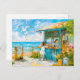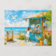 Postal Festiva Chica comprando sandwitch en garrapatas de playa