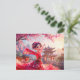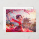 Postal Festiva Chica de historietas bailando con flores de cerezo