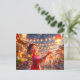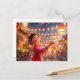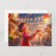 Postal Festiva Chica de historietas con farolillos celebrando el