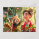 Postal Festiva Chica de historietas con panda rojo en escena lúdi