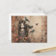 Postal Festiva Chica espeluznante con pájaros negros y flores Hal