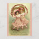 Este singular diseño vintage de color rosa y dorado cuenta con dos chicas bailando bajo un arco de flores. El mensaje dice: Es la mañana de San Valentín, y suavemente roba mi corazón a ti.