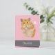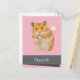 Esta encantadora tarjeta de bienvenida personalizada para chicas incluye un bonito y lujoso Hámster Dorado con una flor sobre un fondo rosado.