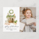 Envíe saludos de vacaciones a sus seres queridos con nuestra hermosa postal de festividades fotográficas. La elegante postal de vacaciones cuenta con una corona de flores acuáticas y una chimenea adornada con decoraciones navideñas y vegetación. La frase "Feliz Navidad" se muestra debajo en un guión de caligrafía negro y moderno. Personalice la parte delantera de la tarjeta postal de Navidades agregando su nombre, el año y una foto. La tarjeta postal se invierte para mostrar su dirección de retorno, una foto adicional y un mensaje de personalizado.