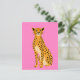 Diseño minimalista de un chita sobre un fondo rosa brillante.