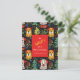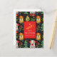 See these cute little dogs decorate a festive Christmas postcard in an adorable Yule pattern. The doggies say "We Woof You A Merry Christmas" to your pet loving friends and family members. The design reflects the bright art of fauvism and folk art. The black background sets off the bright colors. Christmas trees, greenery, and delightful berries, leaves, and other adornments of the winter season fill out the picture. All of the text, which is in yellow and white, can be changed. Be sure to change the example family name and the year to those you pick.