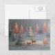 Postal Festiva Ciervos Antiguos En Bosque Nevado Árboles De Navid